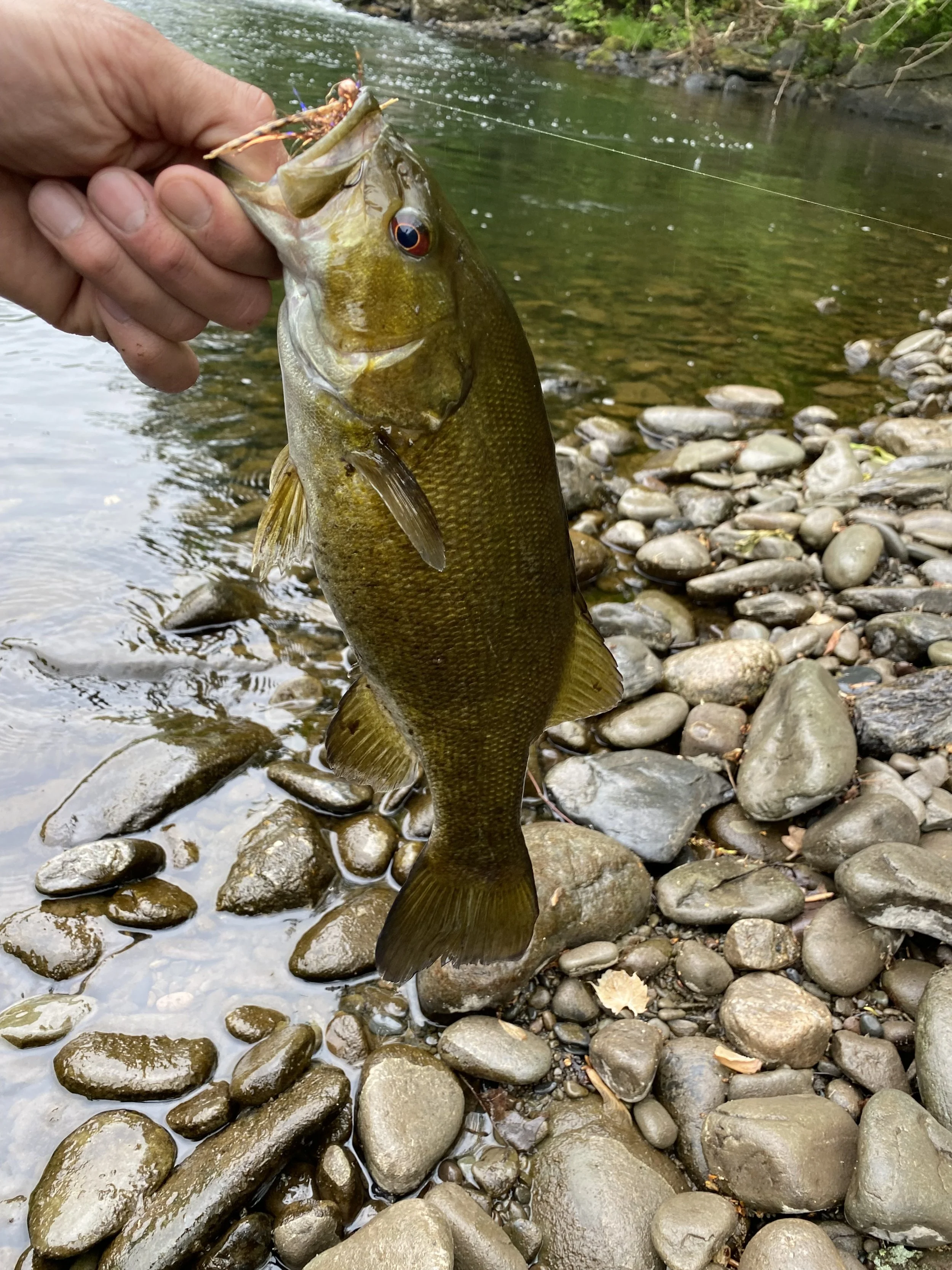 I continued to work the pool and ended up landing a nice smallmouth on the same jig streamer.
